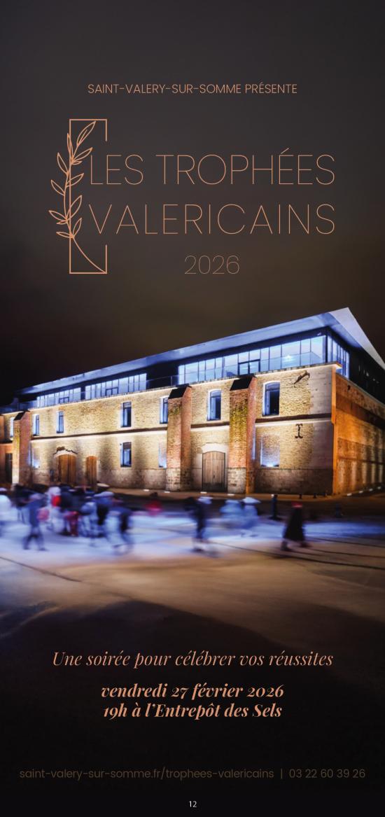 La Ville de Saint-Valery-sur-Somme vous donne rendez-vous pour une nouvelle édition des Trophées Valericains, un temps fort désormais inscrit dans la vie locale. La cérémonie se tiendra le vendredi 27 février 2026 à 19h, à l’Entrepôt des Sels.